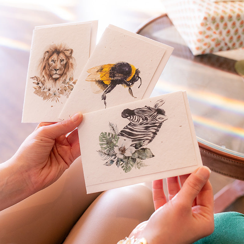 Nous aimons collaborer avec des marques et développer de nouveaux produits passionnants qui sont uniques pour le client. Nous aimons également utiliser différentes techniques et supports tels que les papiers à graines et à pétales, la broderie, le tie dye et le tissu.